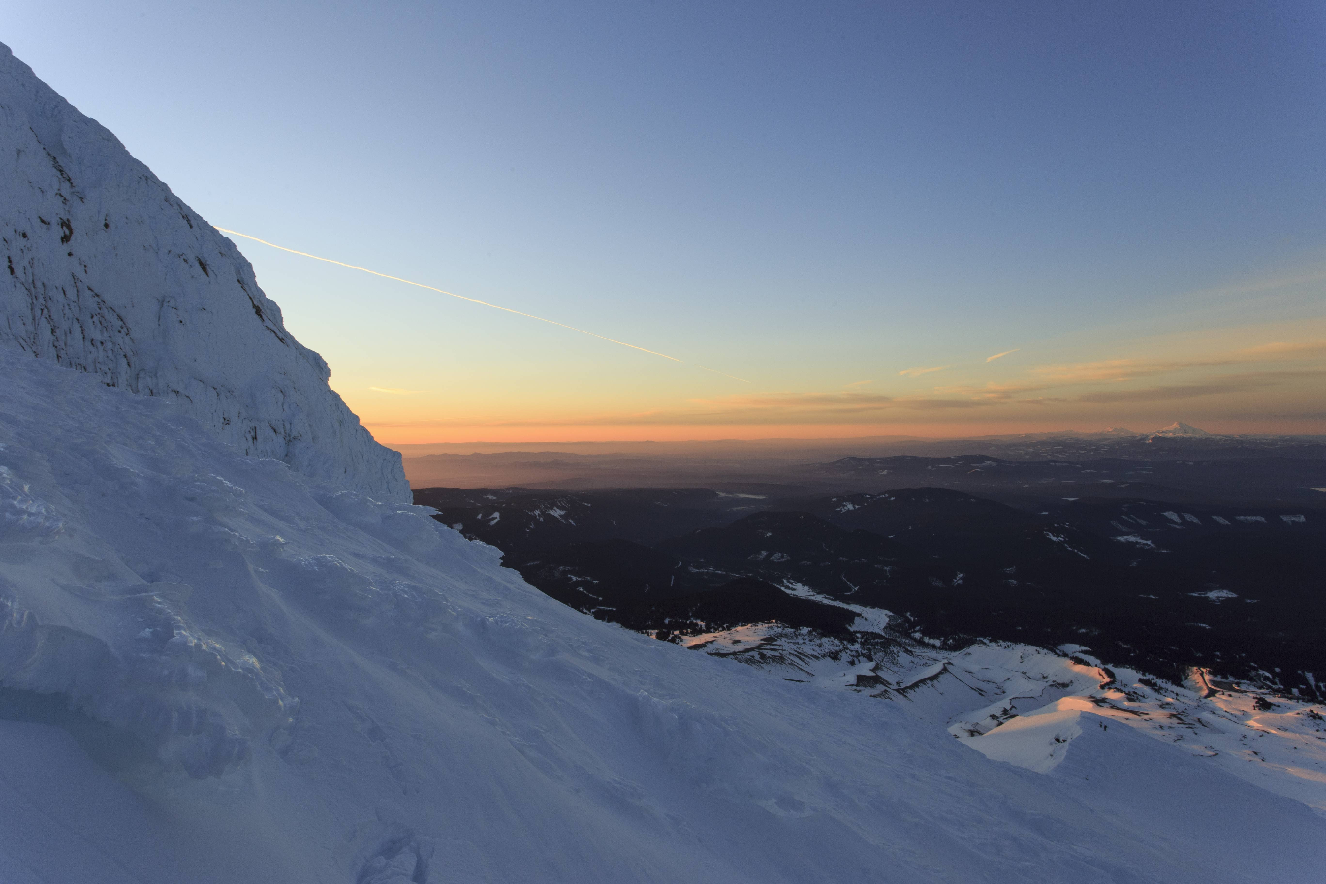 Yesterday's icy sunrise from 10,000' up on Mount Hood, Oregon [OC] [5472x3648]